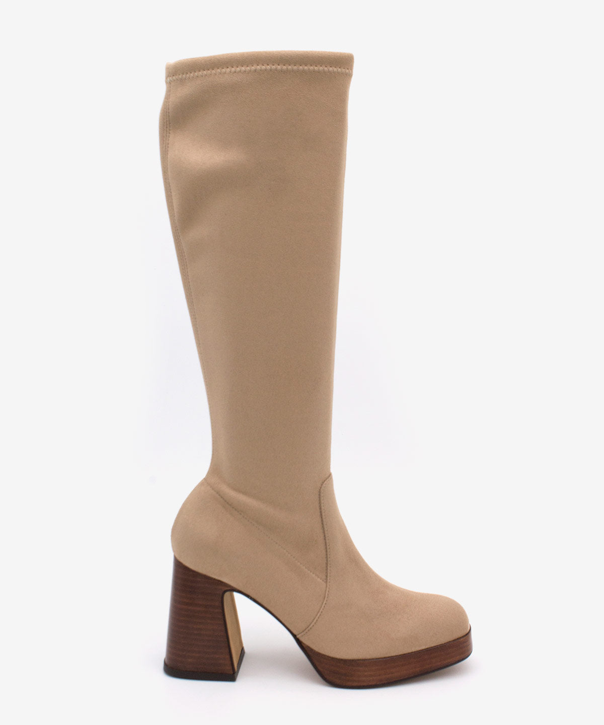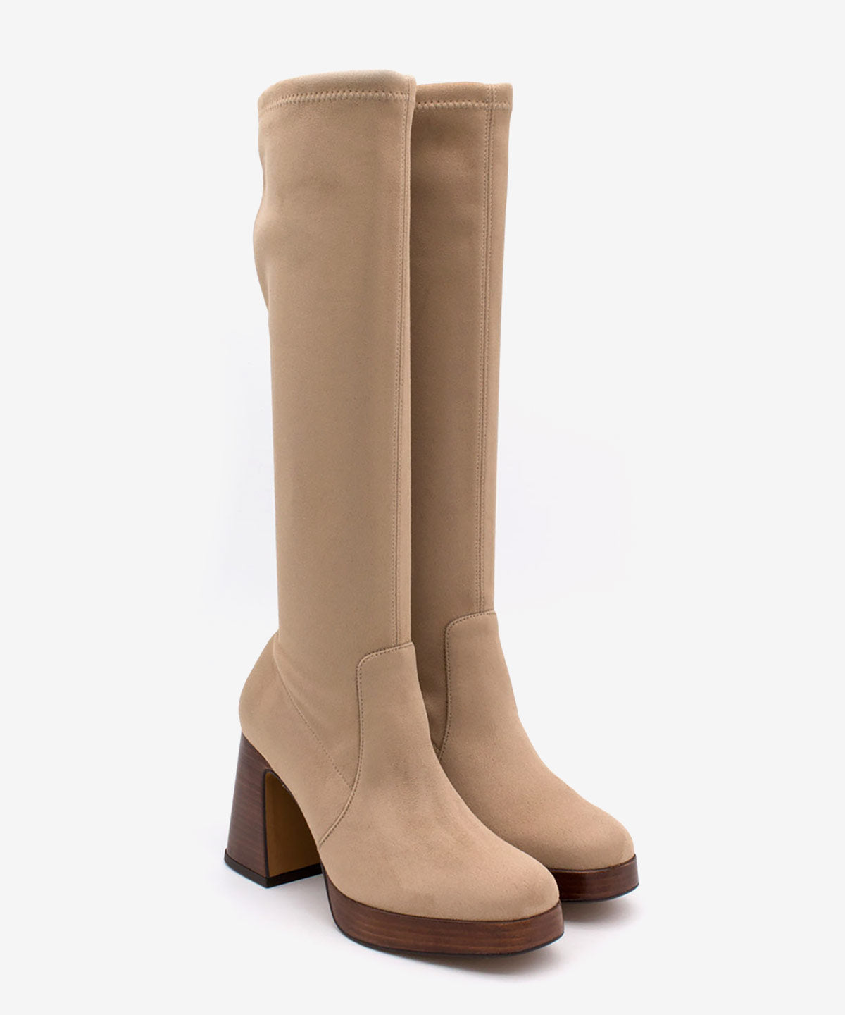 SIELTA es una bota elástica de mujer con puntera redonda, tacón ancho de 8,5 cm y plataforma de 2 cm en imitación madera. Un diseño moderno y versátil que combina estilo y comodidad, ideal para completar looks urbanos.