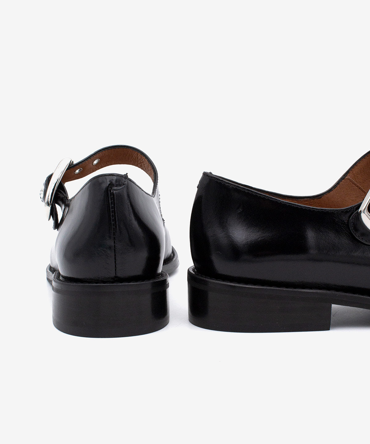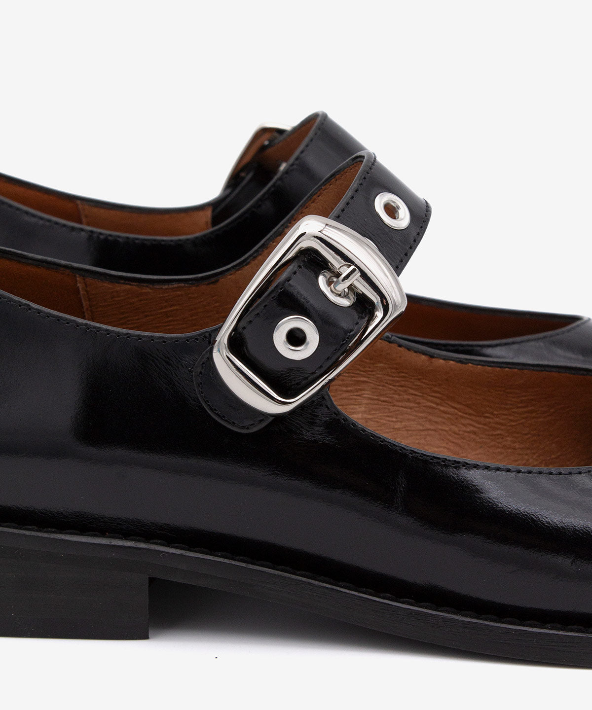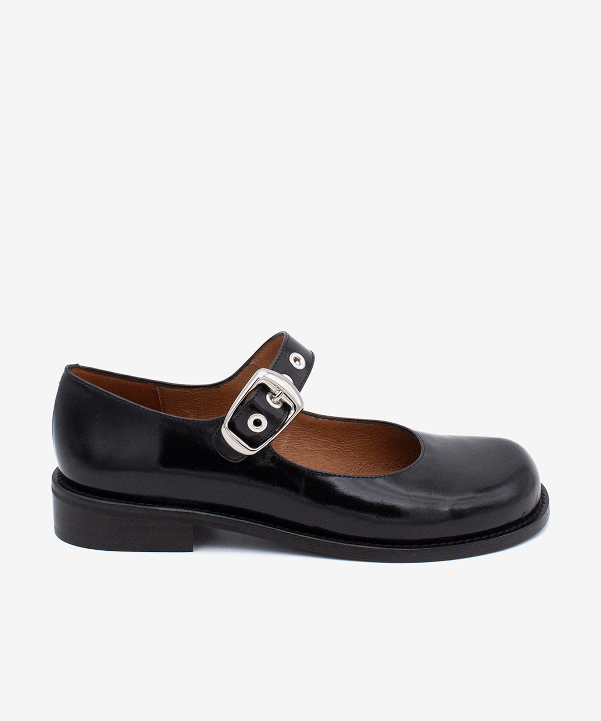 El modelo VALERIE es un zapato tipo merceditas con suela de goma y tacón de 2 cm. Presenta punta redonda y una hebilla grande que le aporta un estilo moderno y atrevido, manteniendo la comodidad en cada paso.