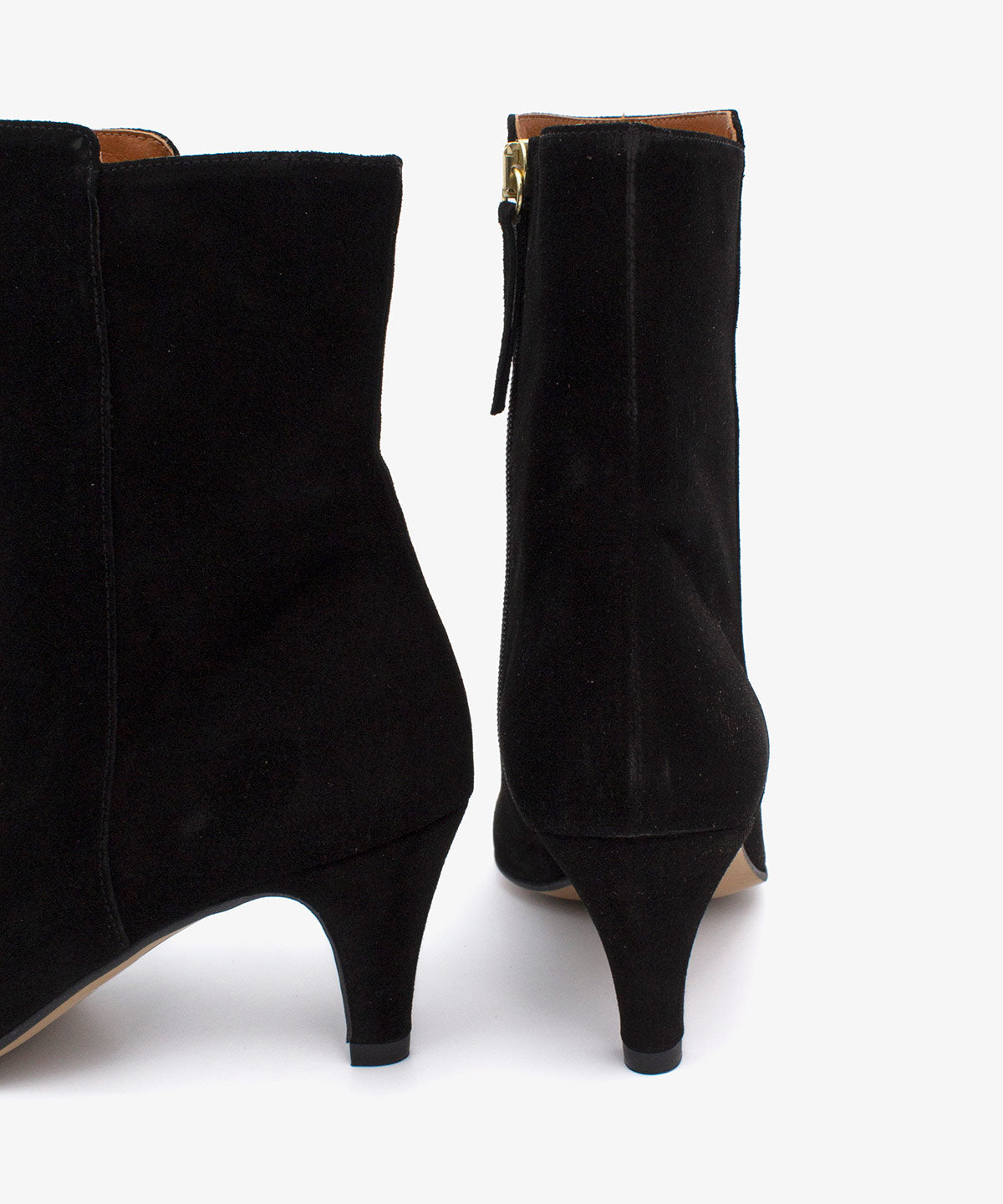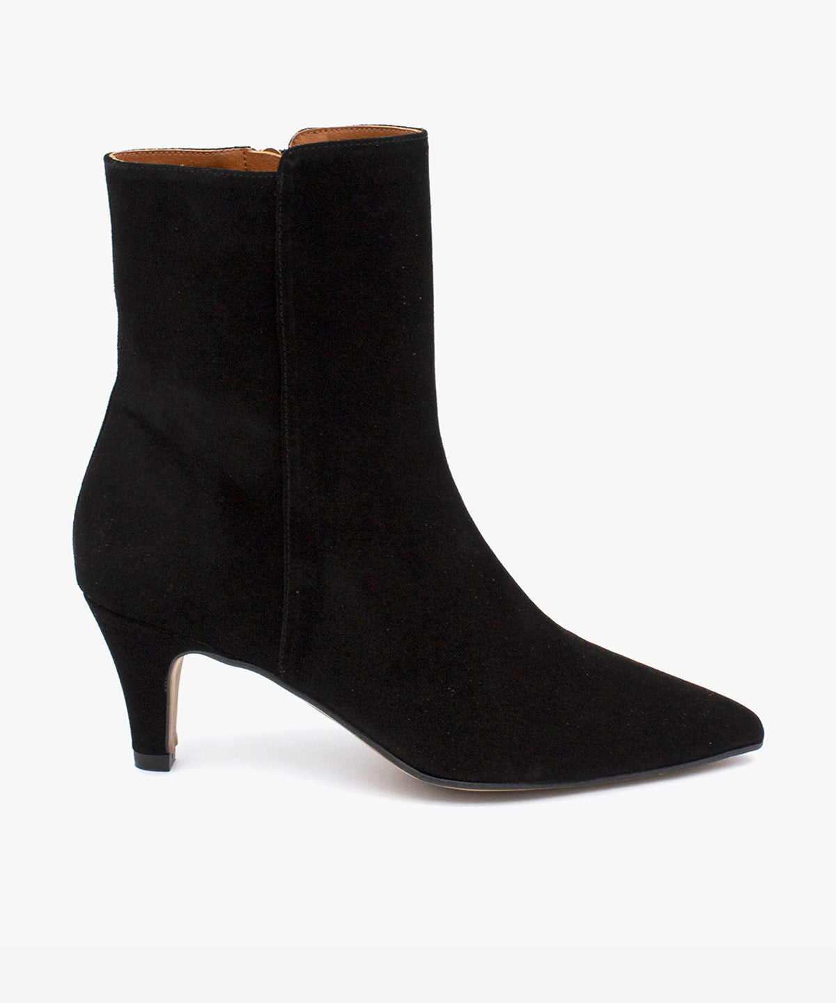 El modelo ESTRA es un botín de mujer con tacón medio y fino de 6 cm, punta fina y cremallera lateral. Su diseño básico y atemporal lo convierte en un imprescindible del armario femenino, combinando elegancia, versatilidad y comodidad diaria.