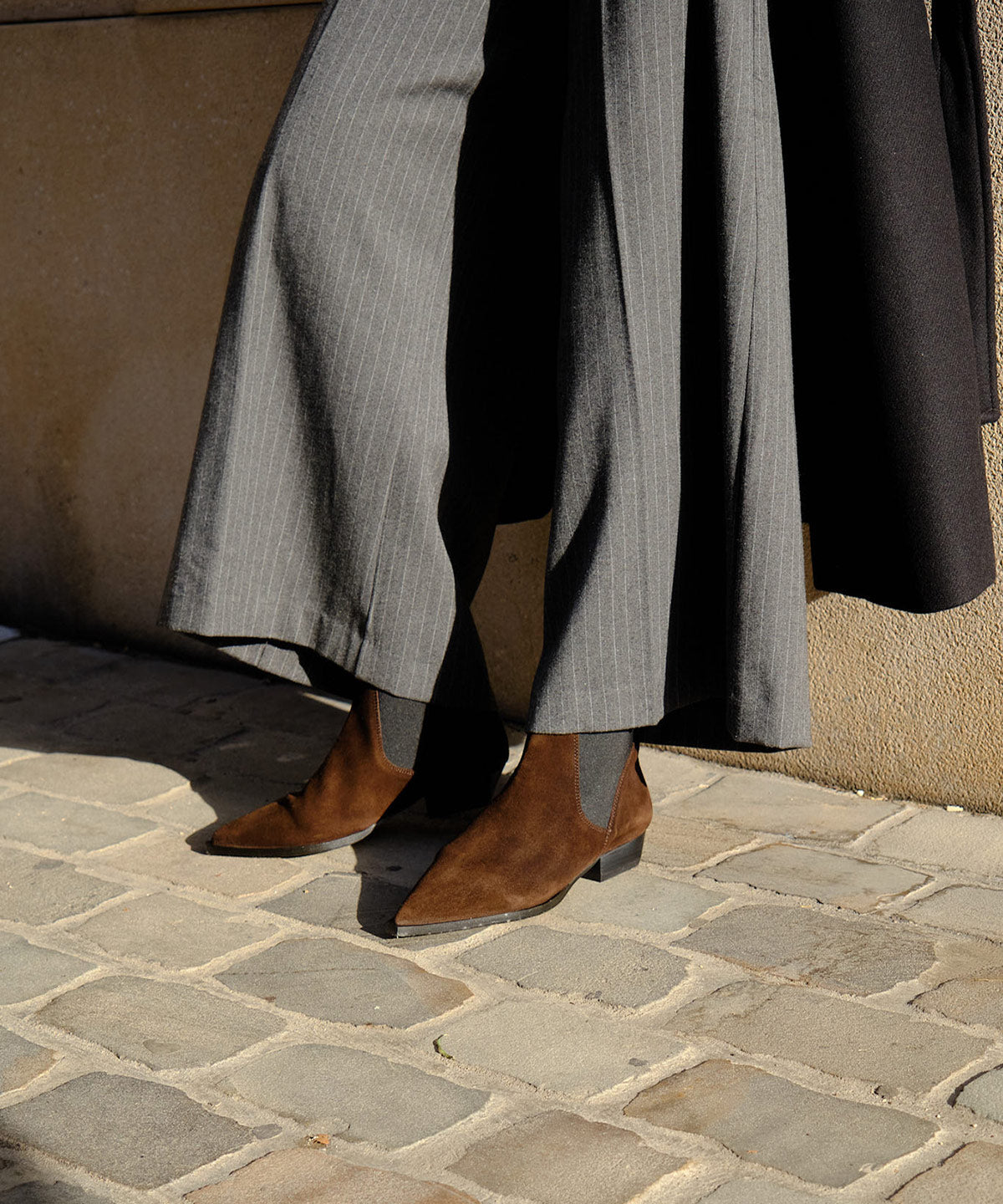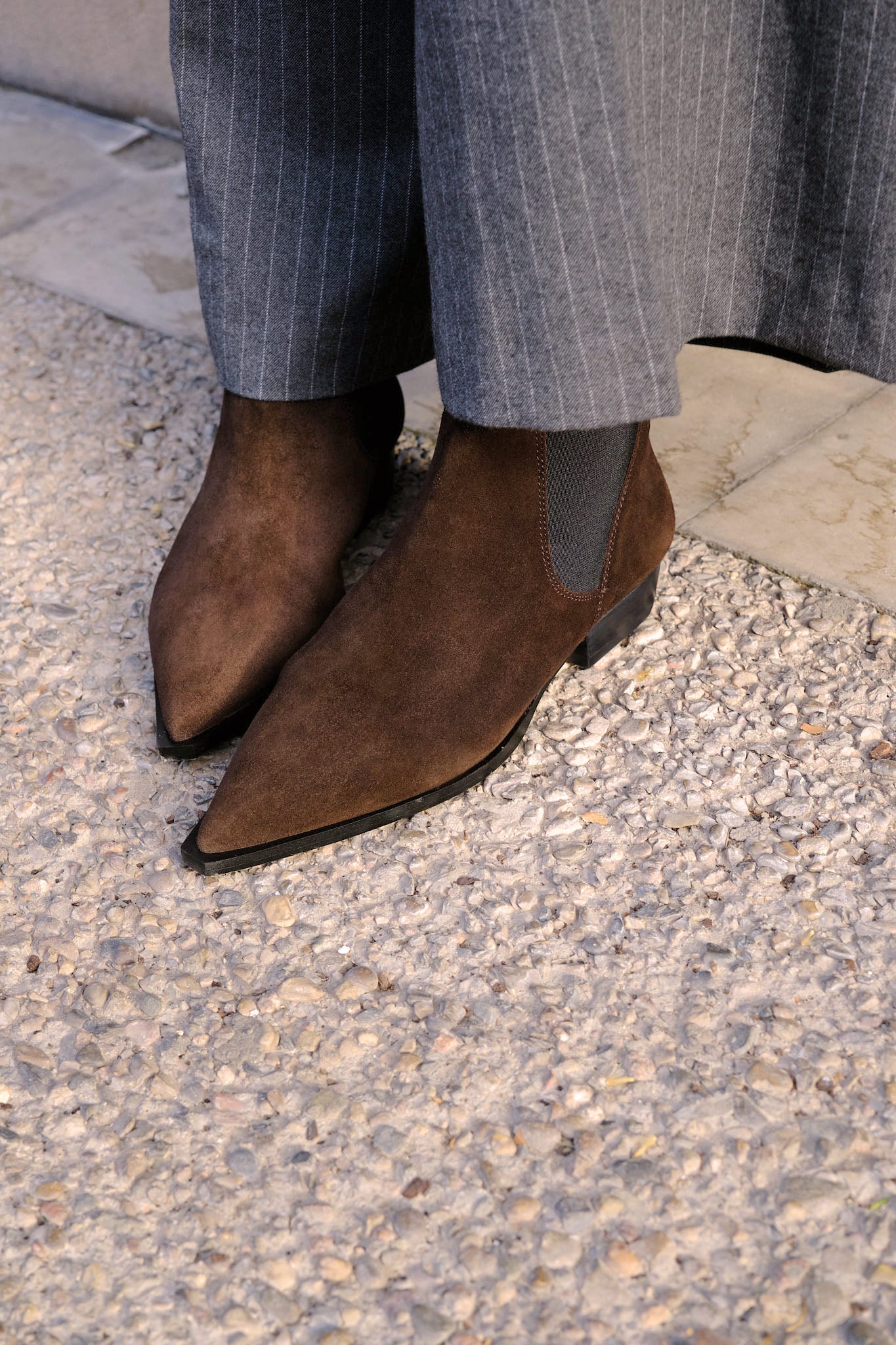 El modelo NEGADE es un botín de mujer de tipo chelsea de caña baja con tirador trasero para calzar fácilmente. Diseñado con punta fina y suela gruesa marcada, combina estilo urbano y comodidad, siendo un calzado versátil y moderno.