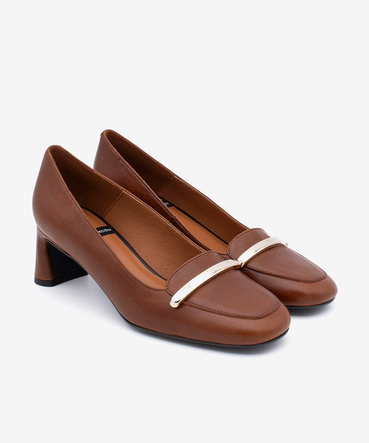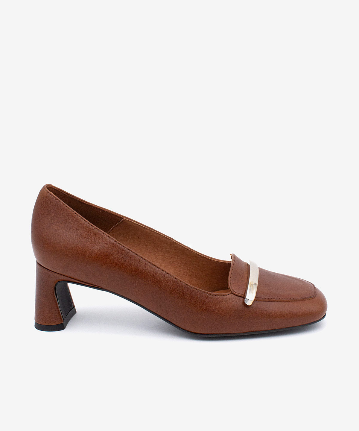 El modelo YAIRA es un salón de mujer con corte mocasín, detalle metálico y puntera redonda. Incorpora un tacón ancho de 5,5 cm que aporta comodidad y estilo. Un zapato versátil, elegante y funcional, perfecto para combinar tanto a diario como en ocasiones