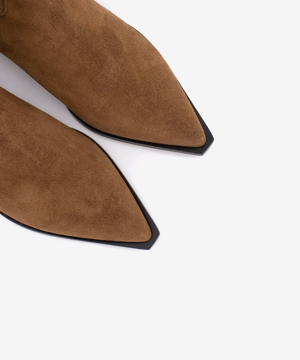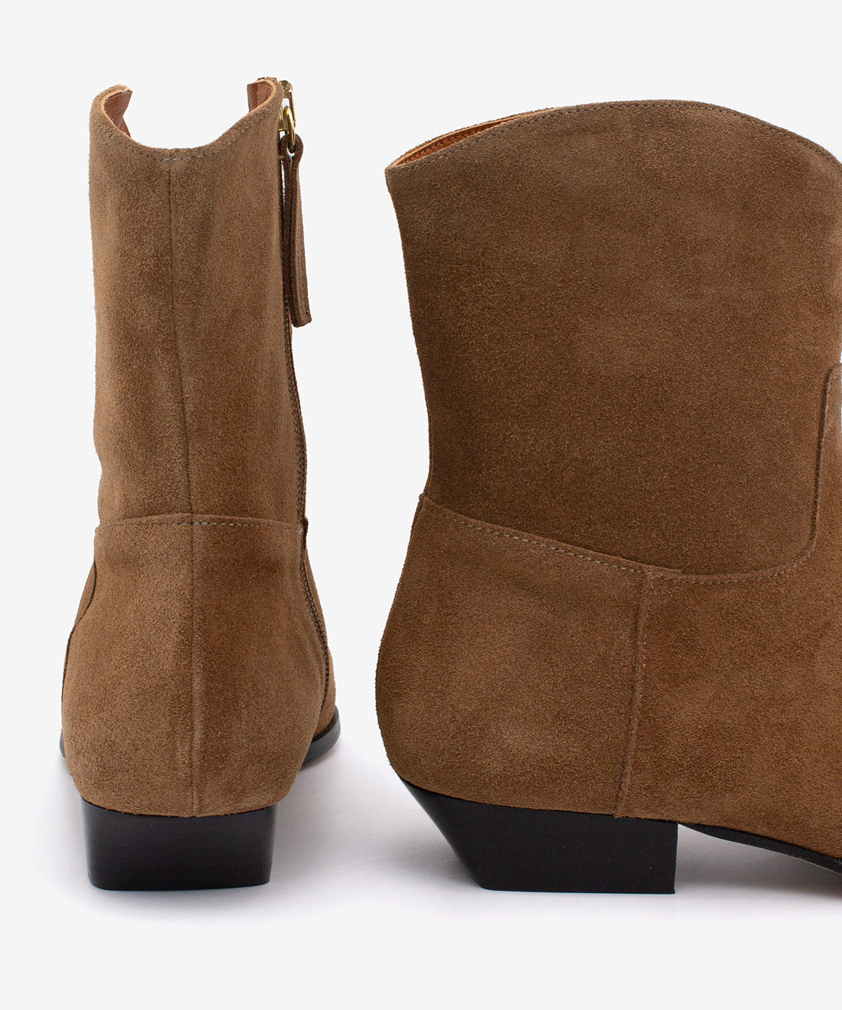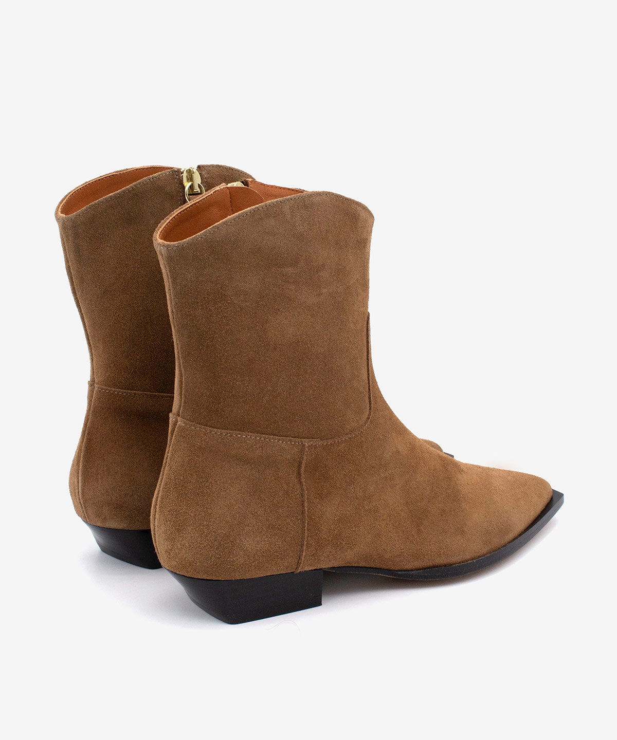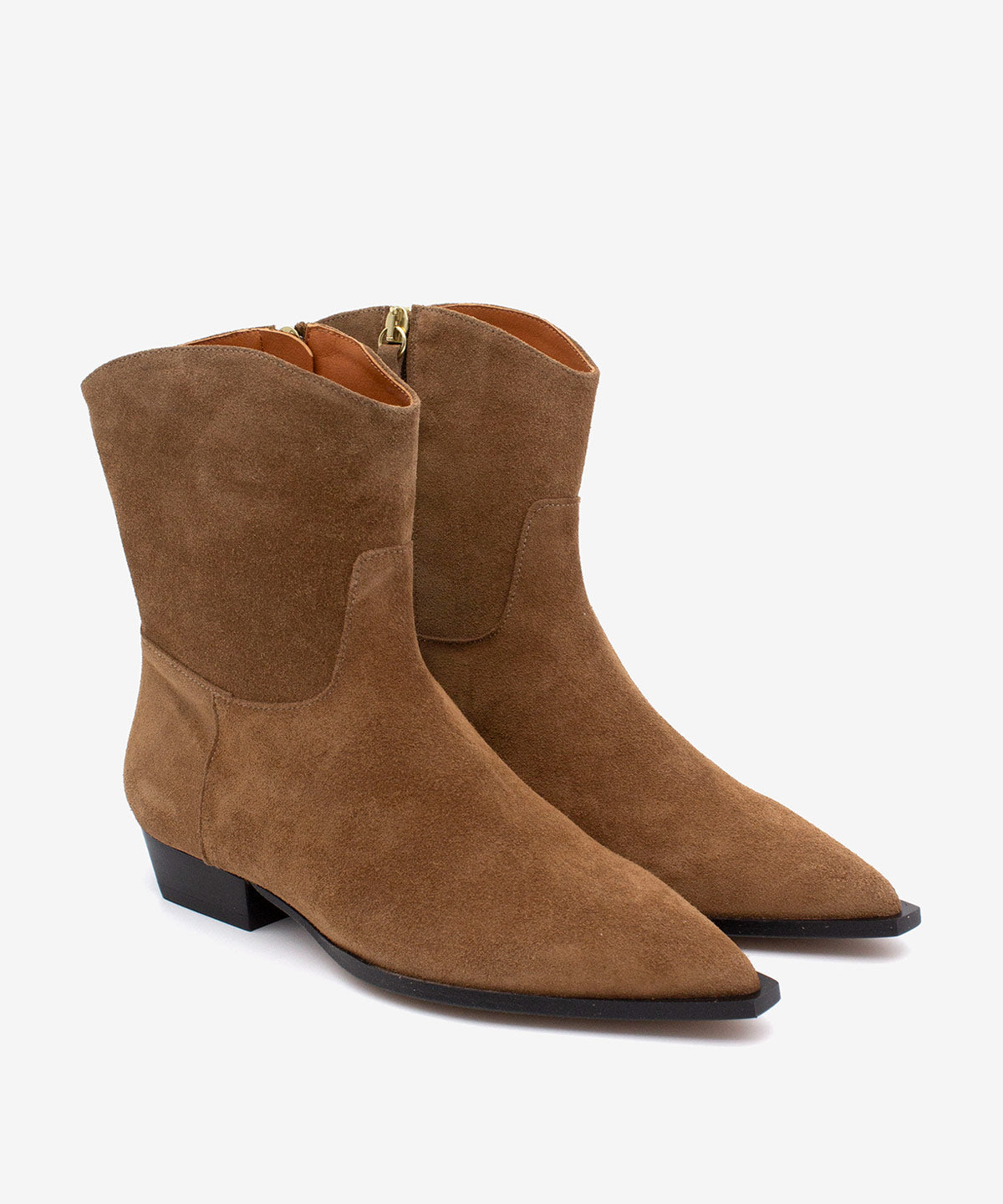 El modelo LAURIE es un botín de mujer de tipo cowboy de caña baja con cremallera interna para calzar fácilmente. Diseñado con punta fina y suela gruesa marcada, combina estilo urbano y comodidad, siendo un calzado versátil y moderno.