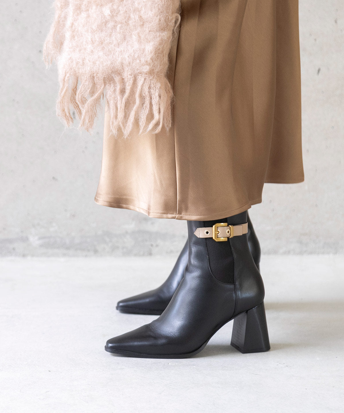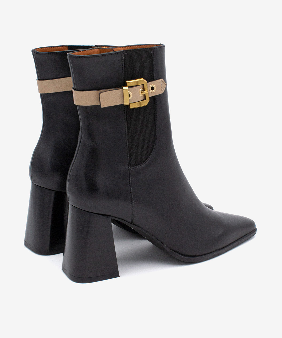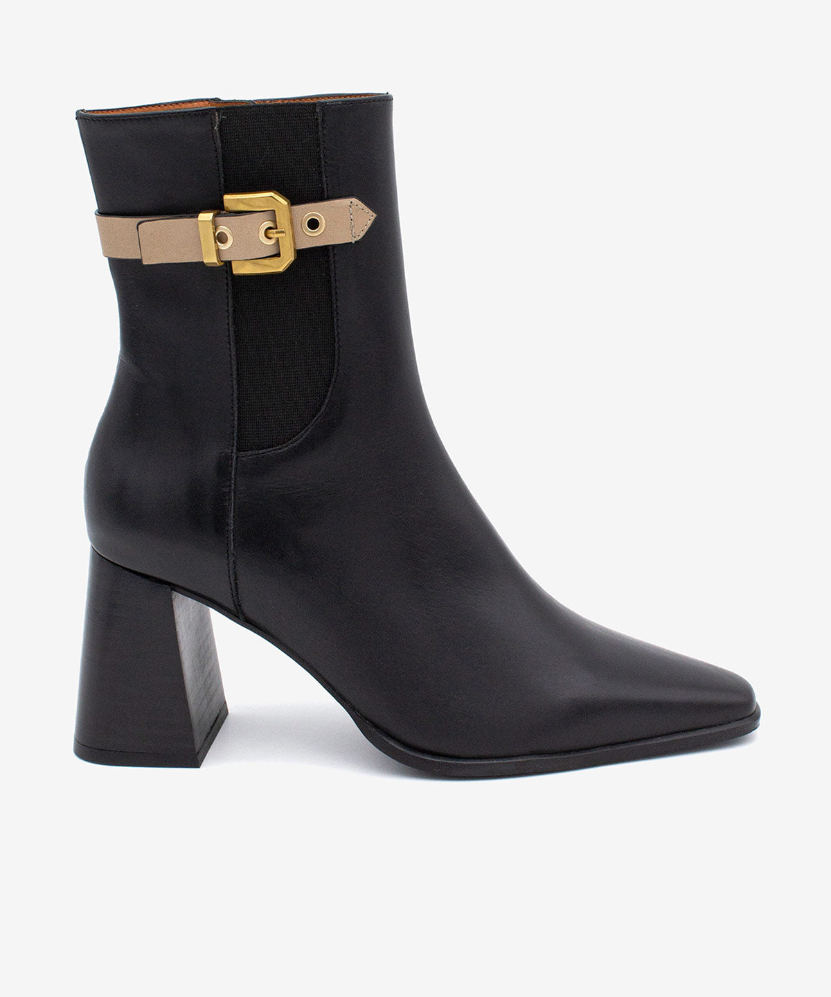 El modelo SANNA es un botín de mujer con punta fina y tacón ancho de 7 cm. Dispone de cremallera interna y un elegante adorno de correa en el tobillo. Con suela de goma, ofrece comodidad y un estilo moderno y distintivo, perfecto para cualquier ocasión.
