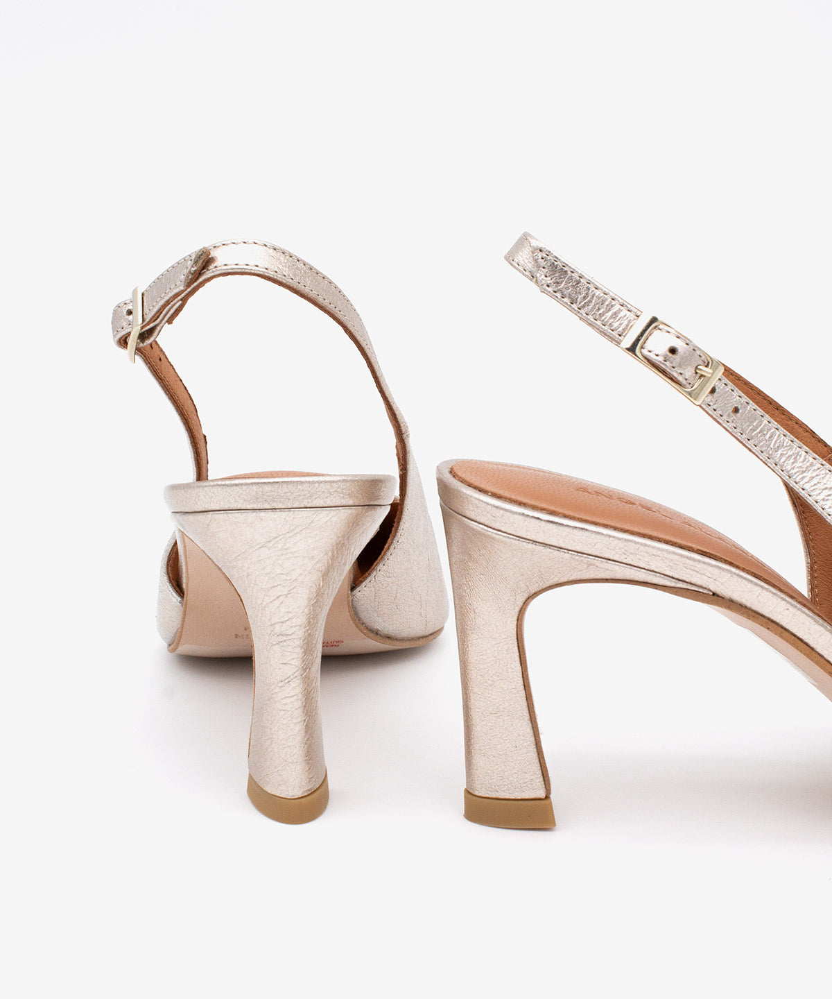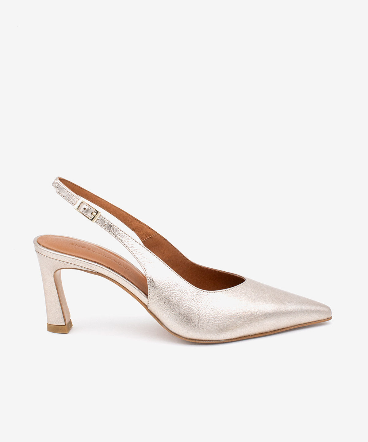 This metallic leather shoe is perfect for dressy outfits, office wear, or special events. Its slingback design is a key trend, offering visual lightness and freshness, while the medium-high heel allows for a balance between style and comfort throughout the day.