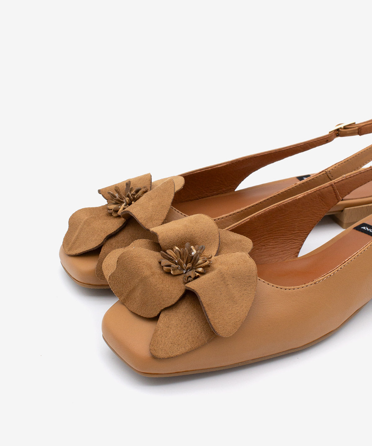 Rosina is an elegant and comfortable backless flat with a square toe, a 1.5 cm flat block heel, and a realistic floral embellishment that adds a feminine and distinctive touch. A model designed for everyday wear, ideal for urban looks and informal occasions with style.