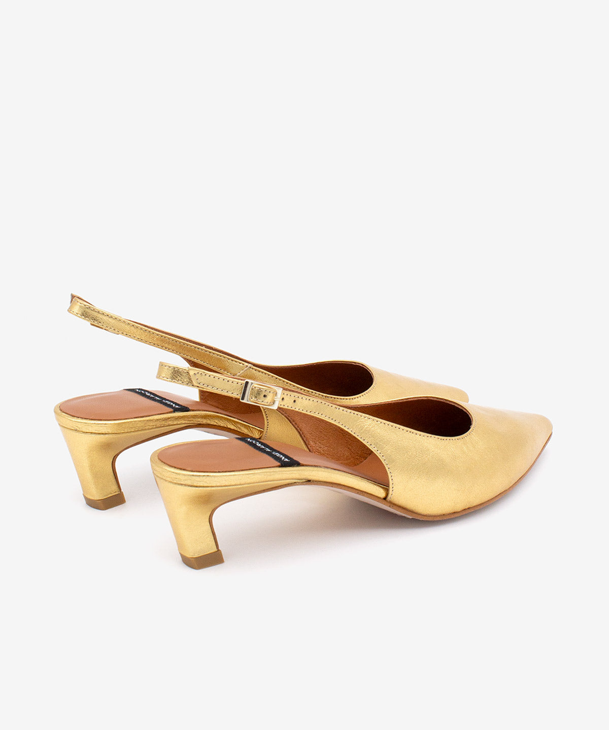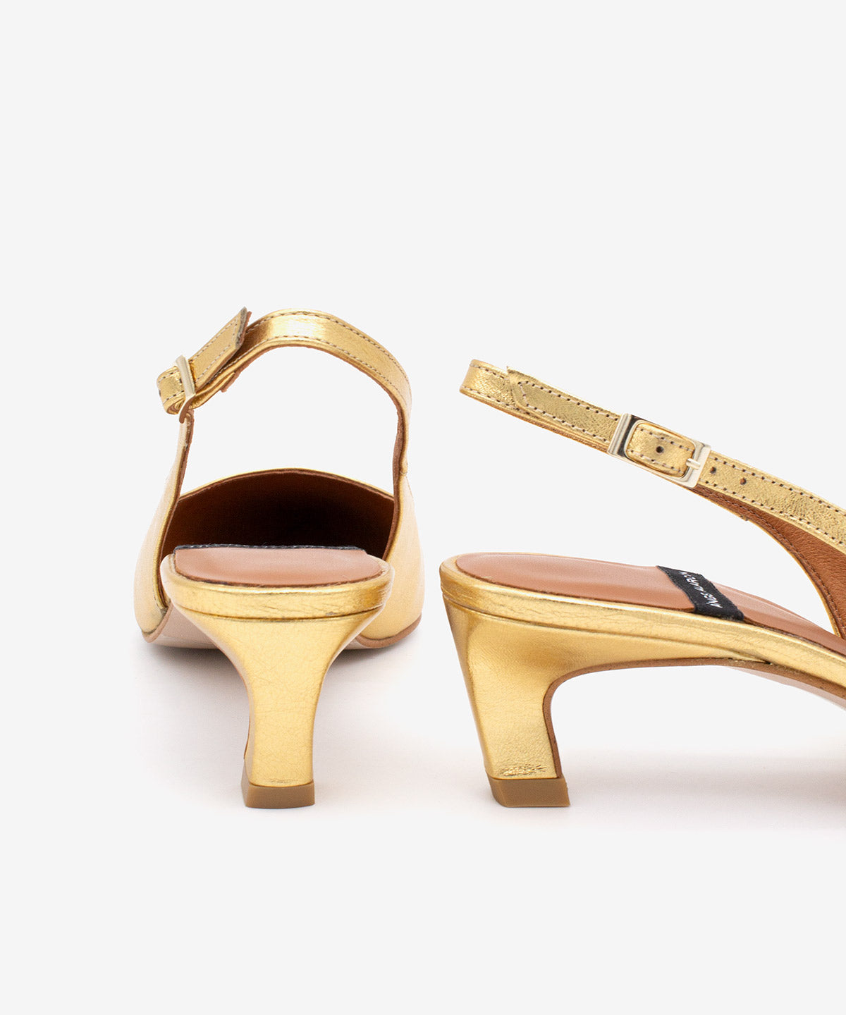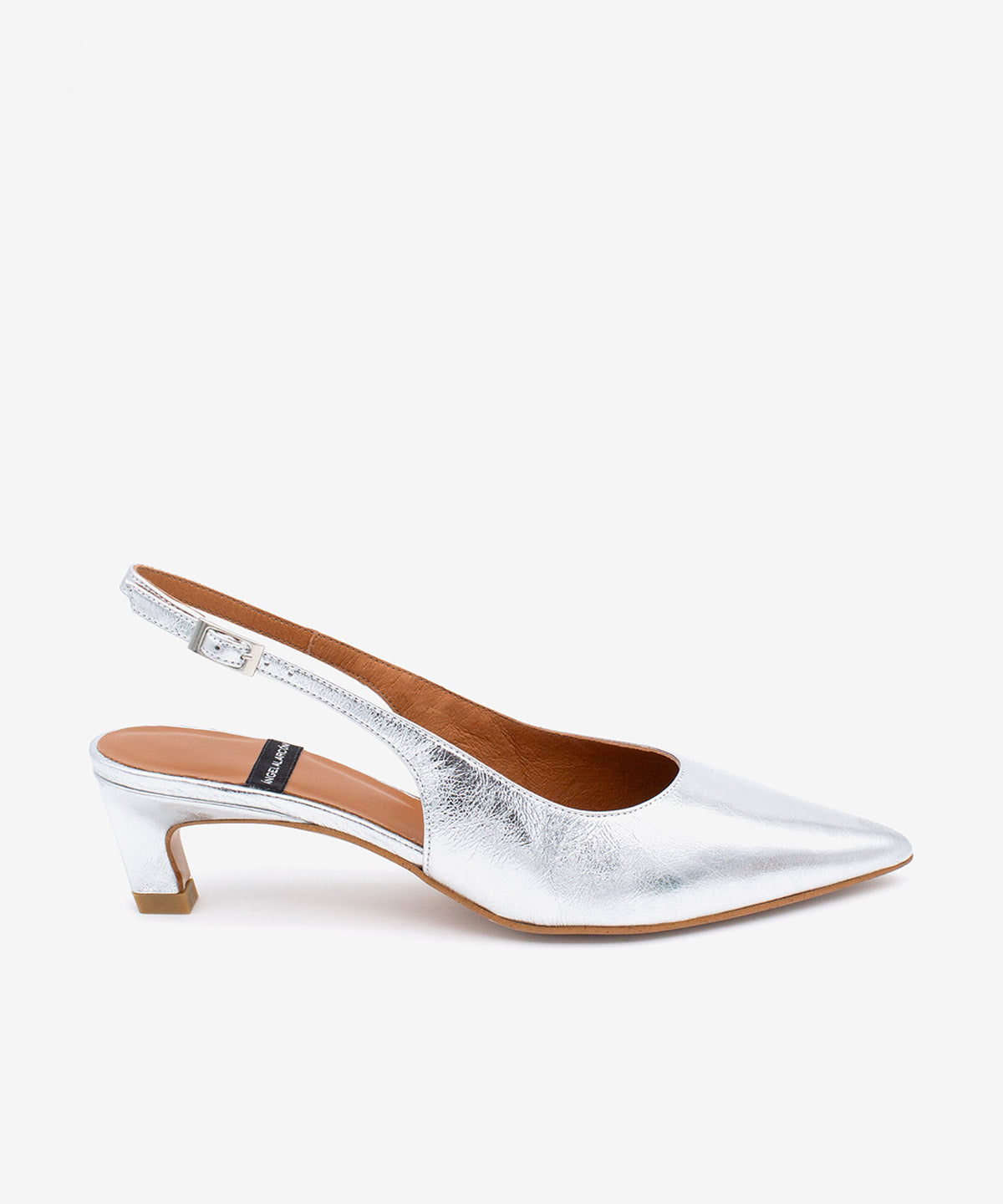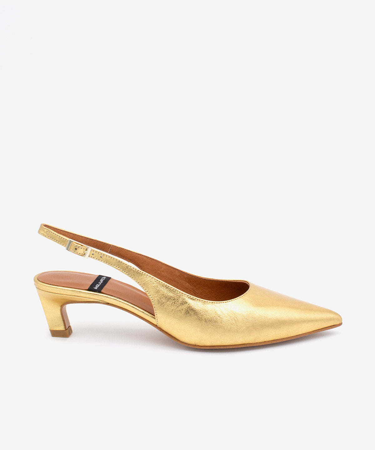 SUZANNE – Slingback pump with low heel in metallic leather