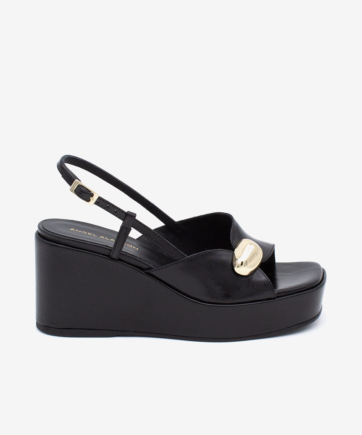 FIORELLALeather wedge platform sandal with metallic embellishment