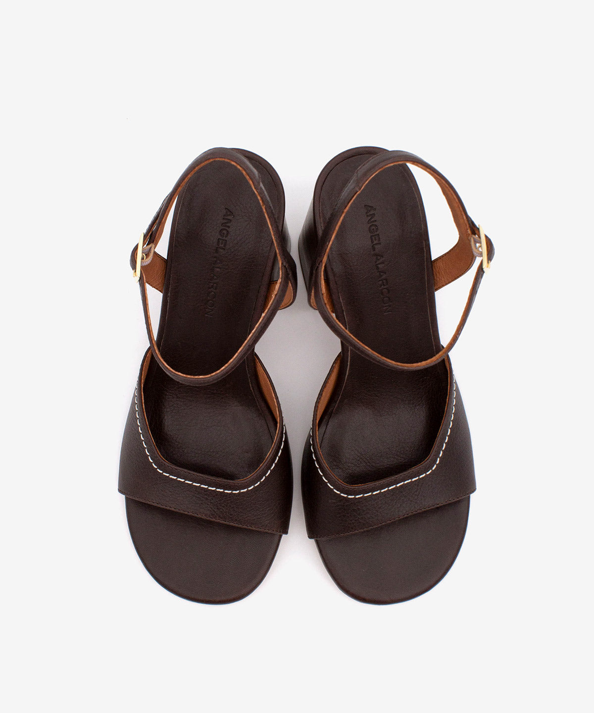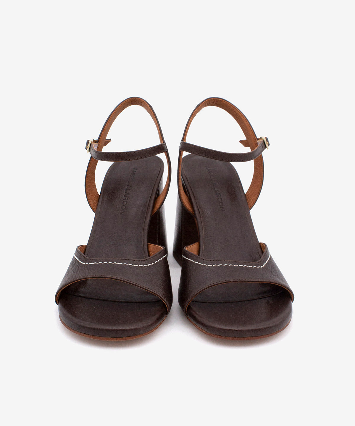 LUISA is an elegant and modern women's sandal, designed with a round open toe and a square-cut vamp with prominent stitching. Its ankle straps with a buckle closure provide security and style, ideal for dressy occasions or special events where you want to look sophisticated and comfortable.