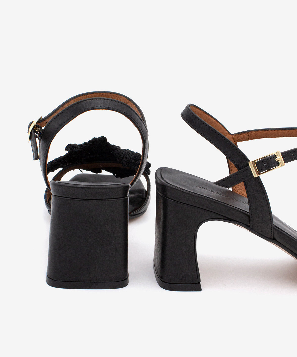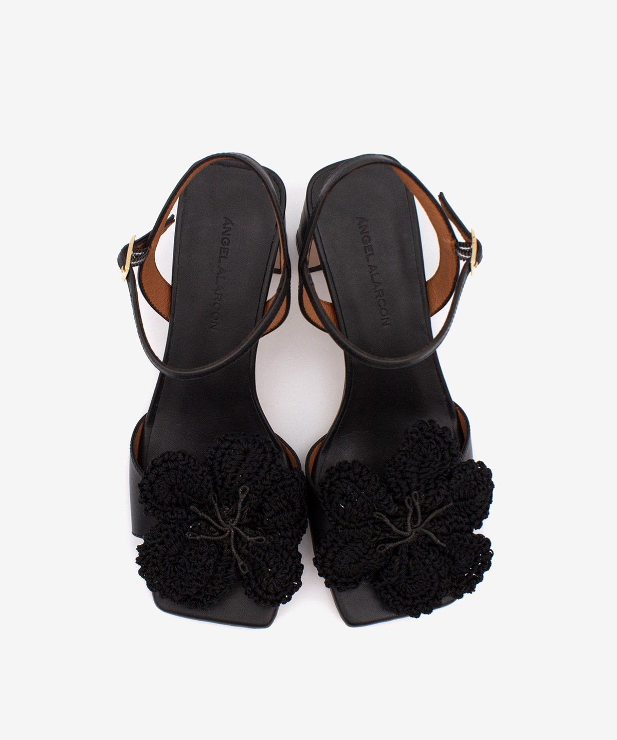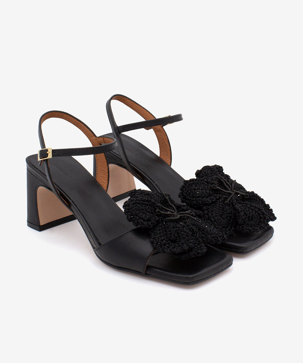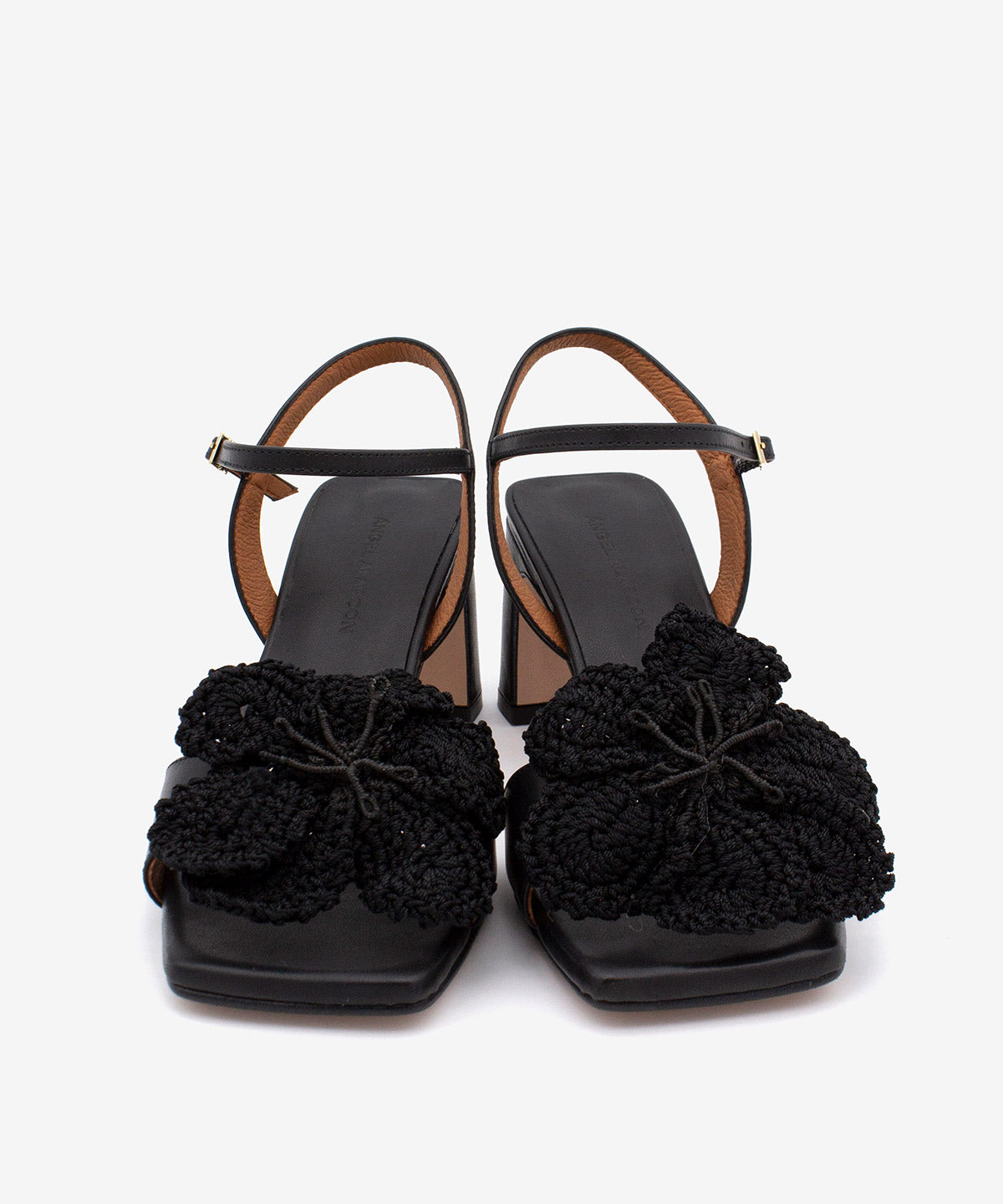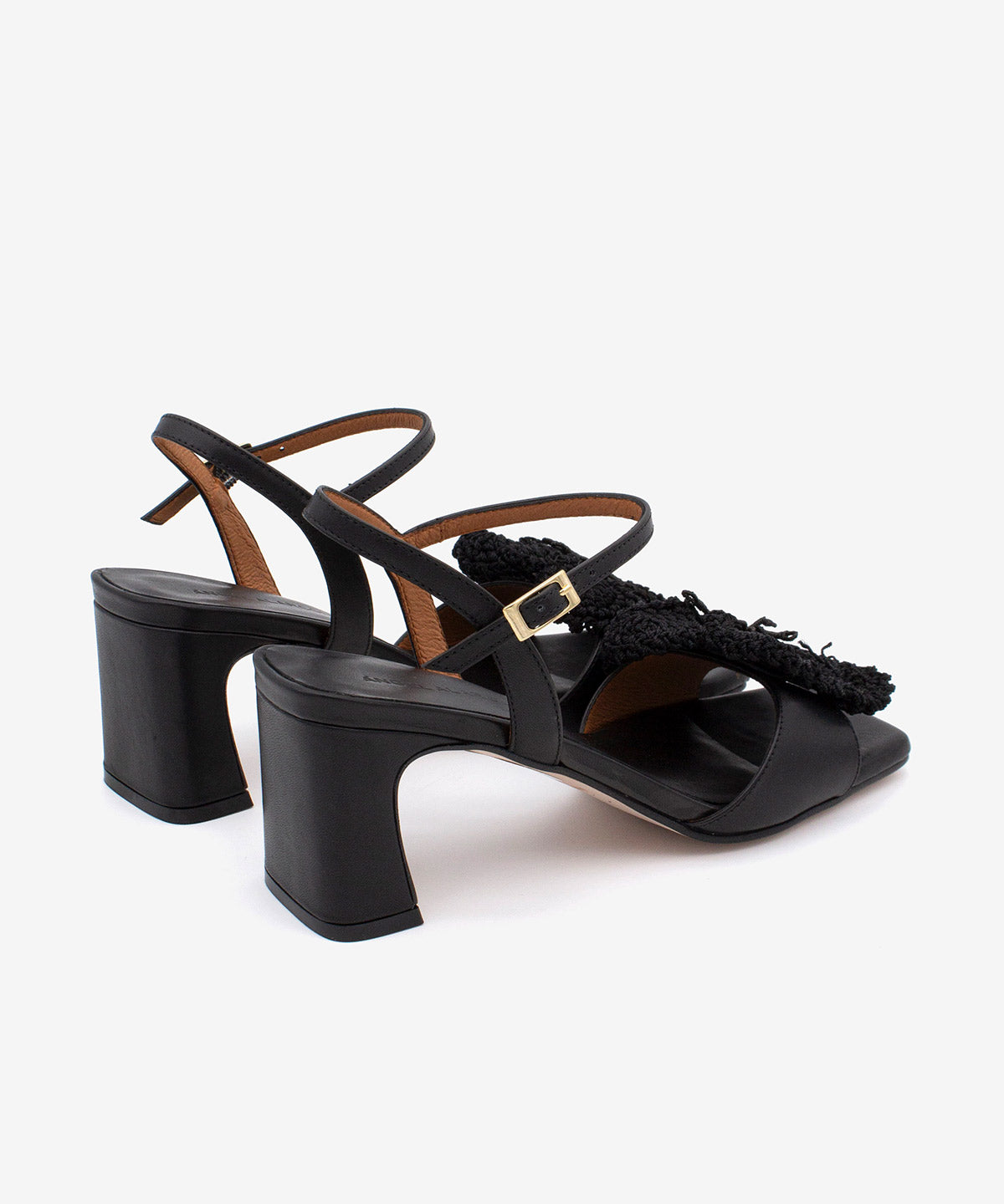 PALMA – Soft leather block heel sandal with crochet flower embellishment - Black Shoes / 35 is backordered and will ship as soon as it is back in stock.