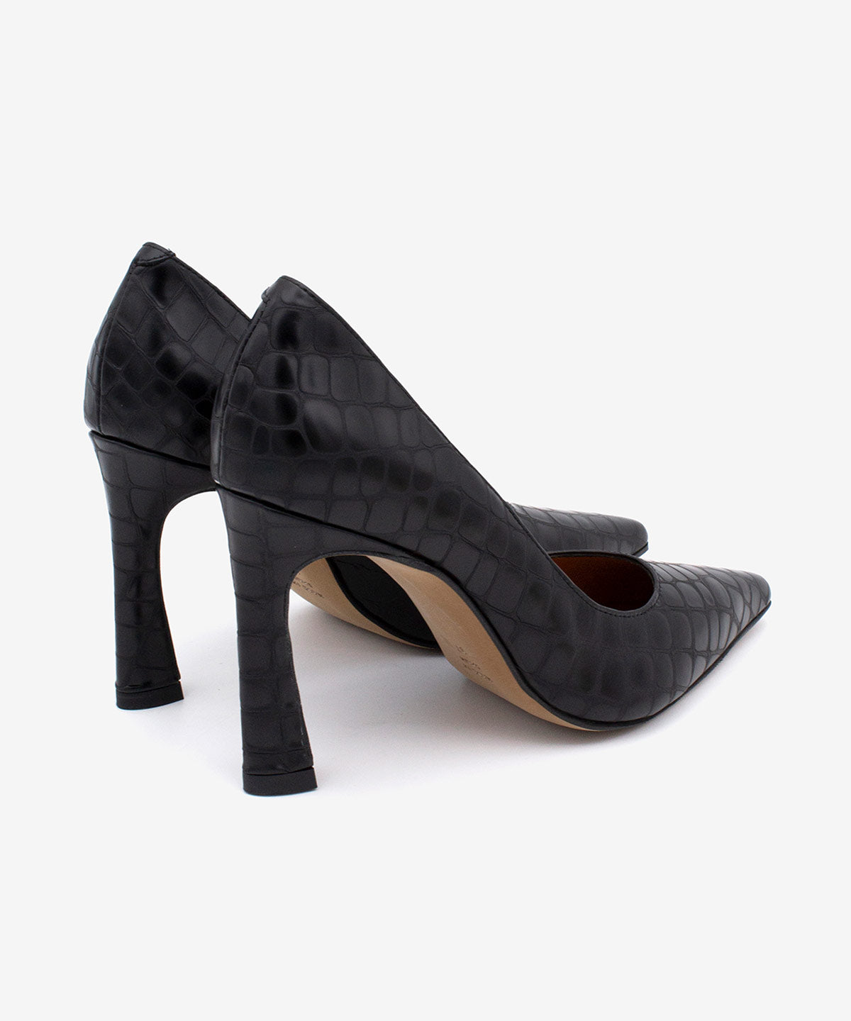 The LAMIA model is a women's ankle boot with a 9cm stiletto heel and an internal zipper, featuring a pointed toe that elongates the silhouette. An elegant and sophisticated design, ideal for evening outfits or special events, combining style, height, and distinction.