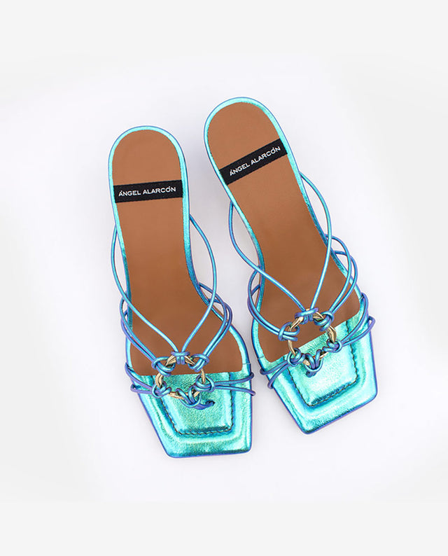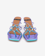 Iridescent strappy sandal with embellishment