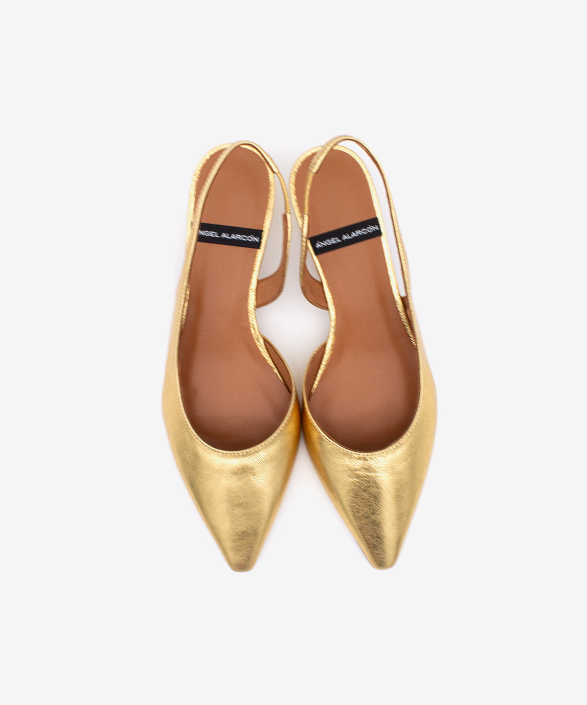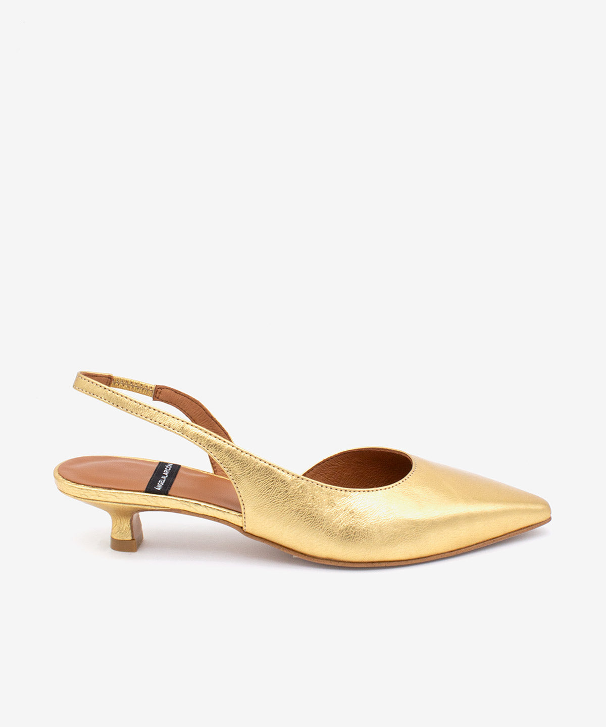 FABIANA – Slingback pump with low heel in textured metallic leather - Gold shoes / 36 is backordered and will ship as soon as it is back in stock.