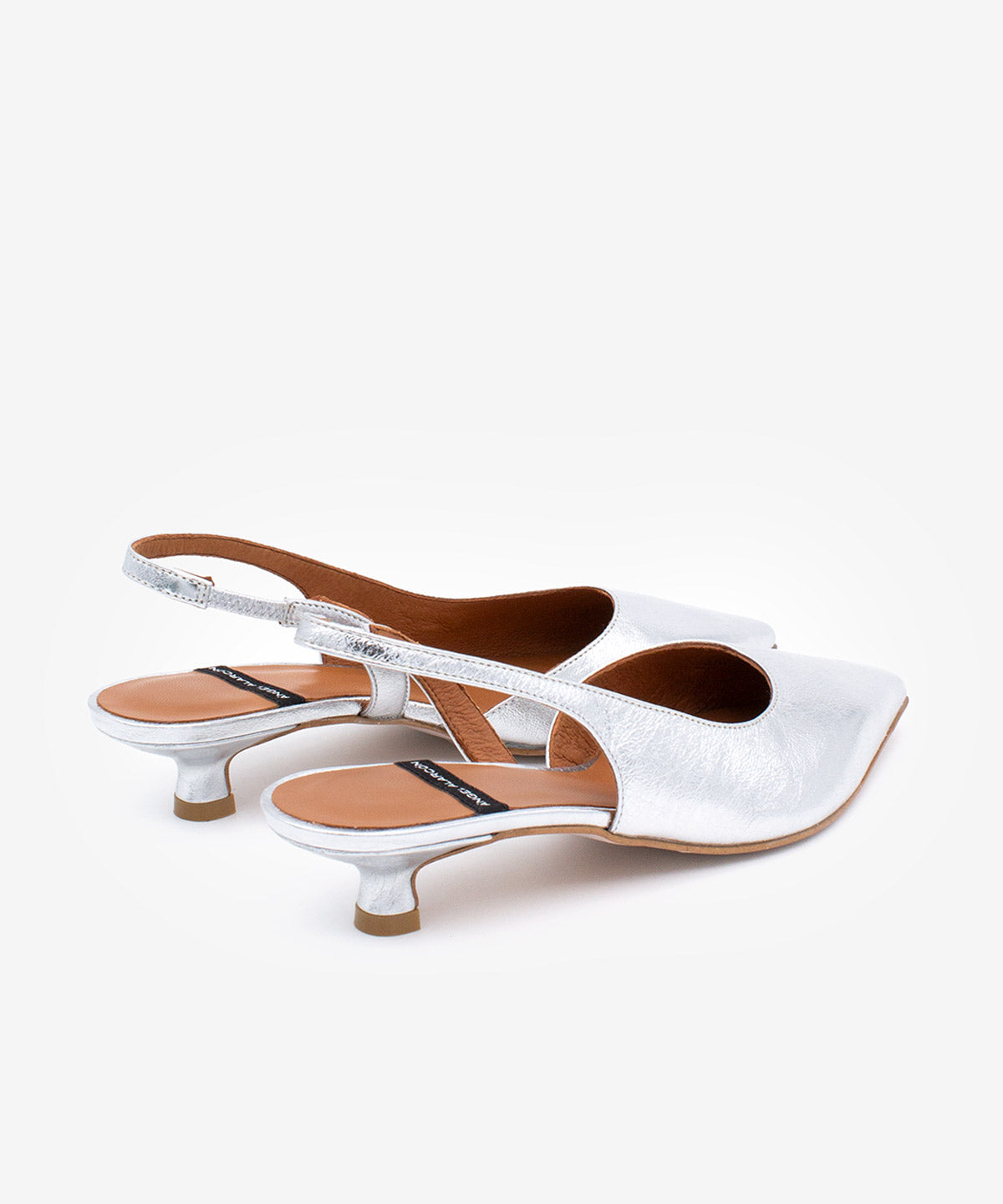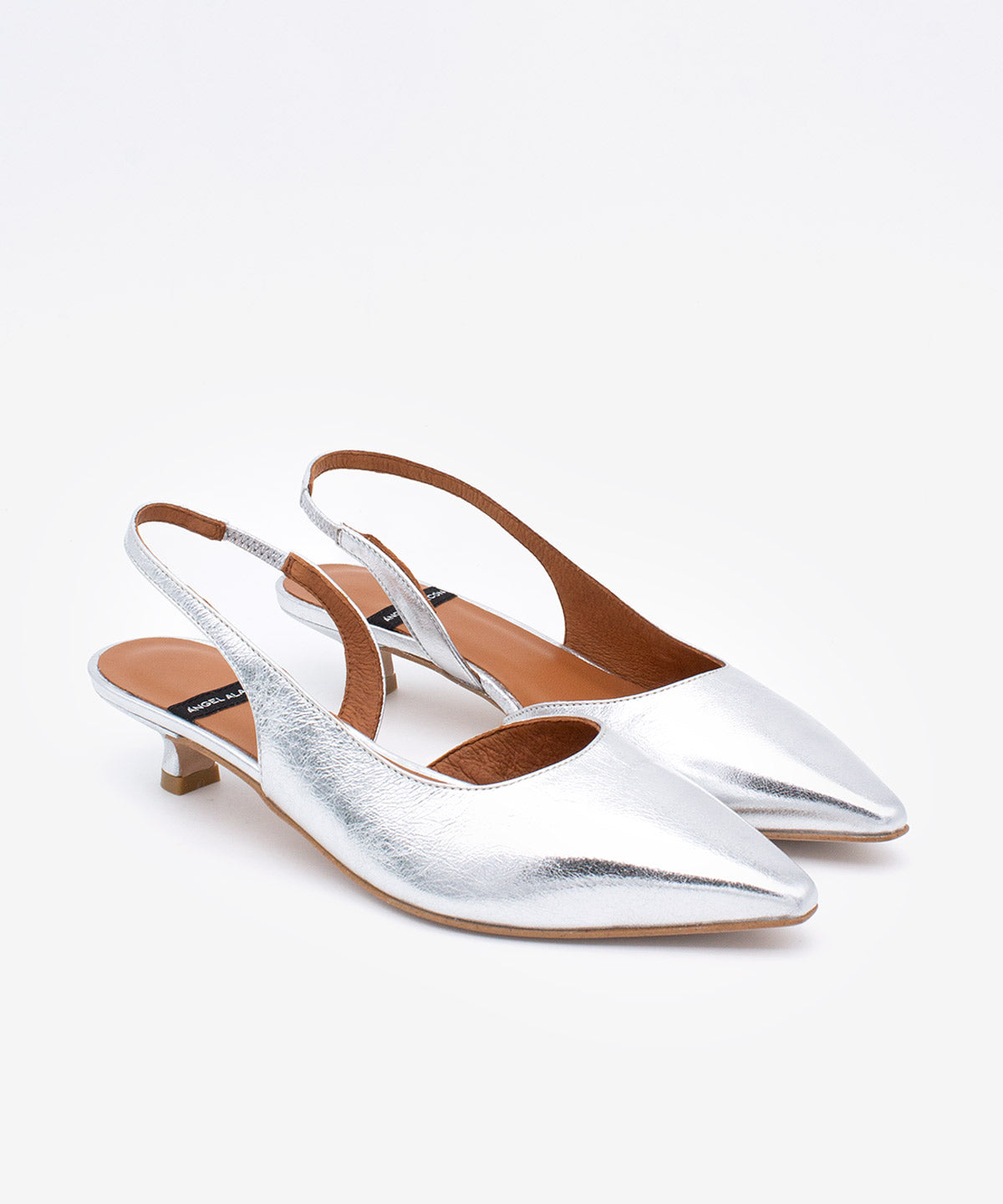 FABIANA – Slingback pump with low heel in textured metallic leather