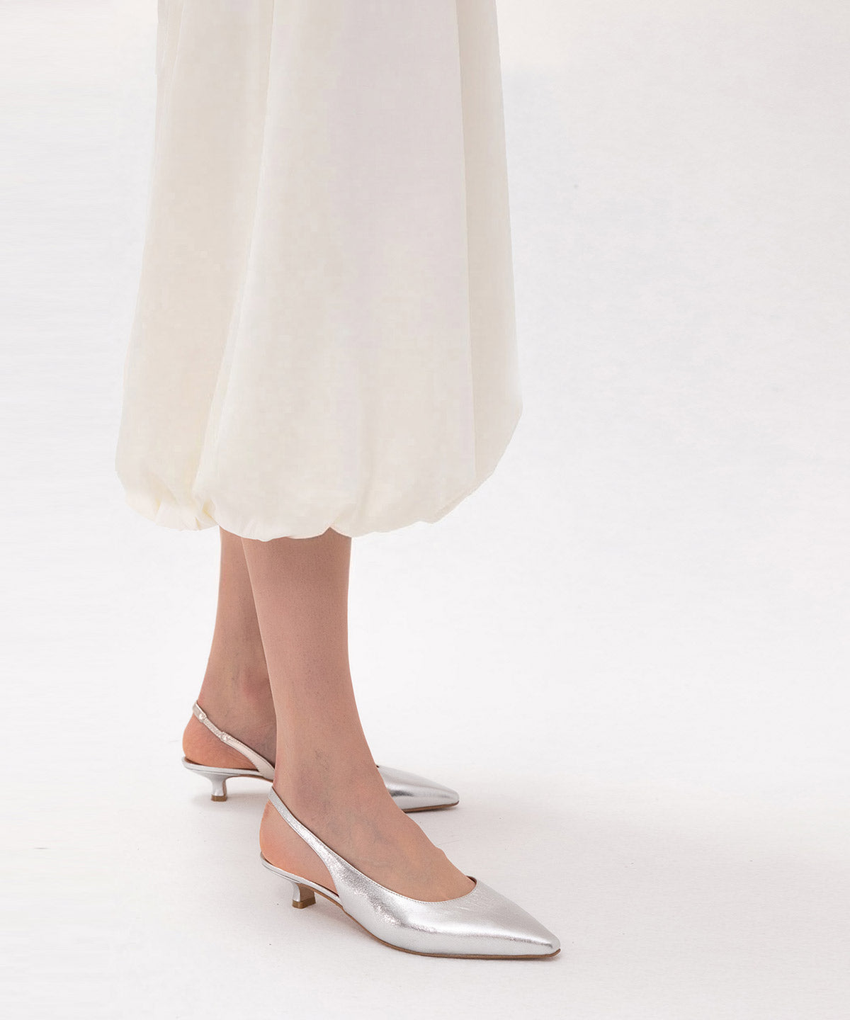 Fabiana is a comfortable and modern slingback pump with a pointed toe, round vamp, and a low 3.5 cm heel. Its versatile design makes it an ideal wardrobe staple for everyday wear or going out, combining elegance and comfort with every step.