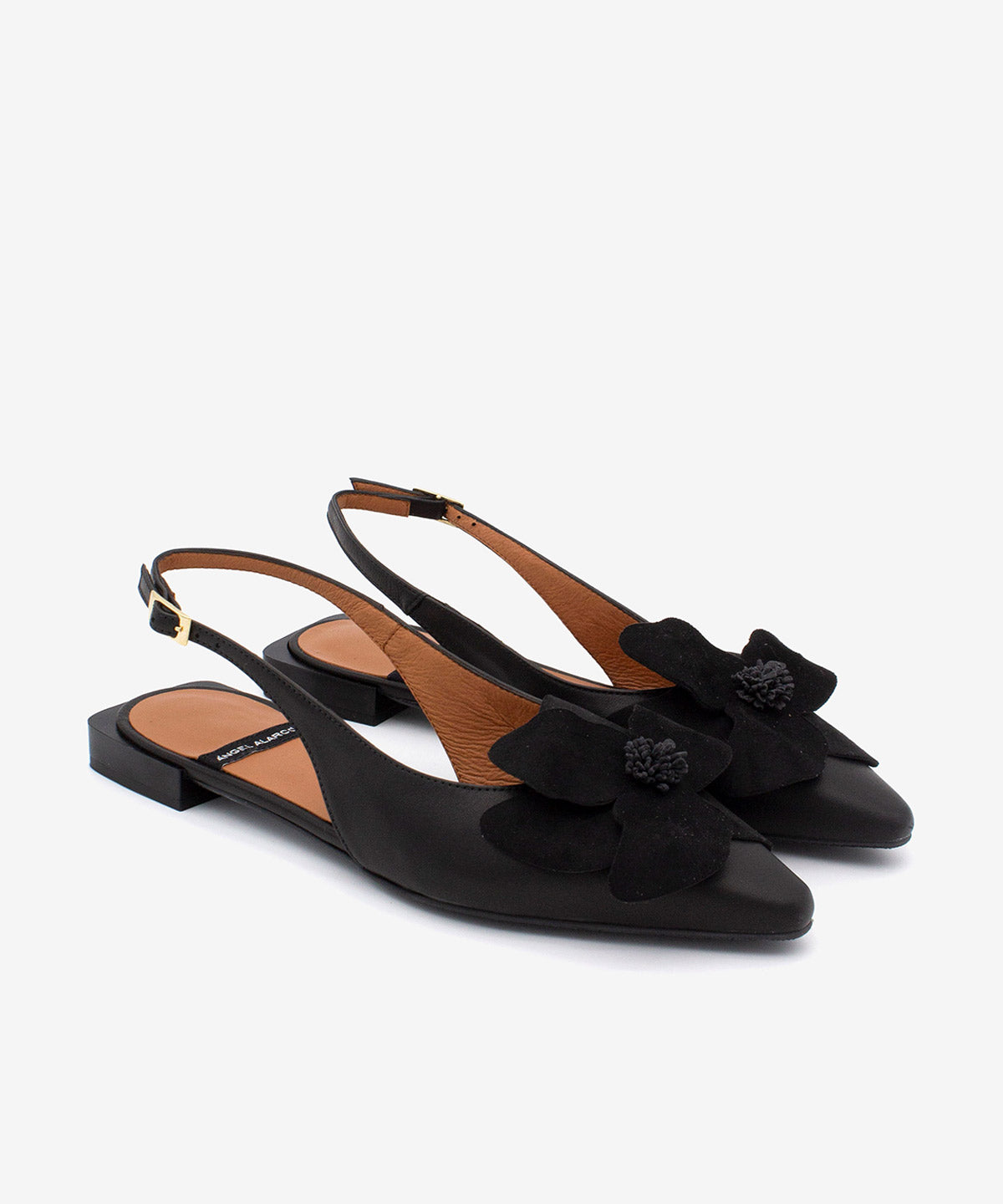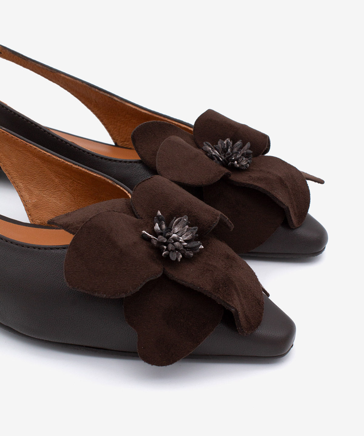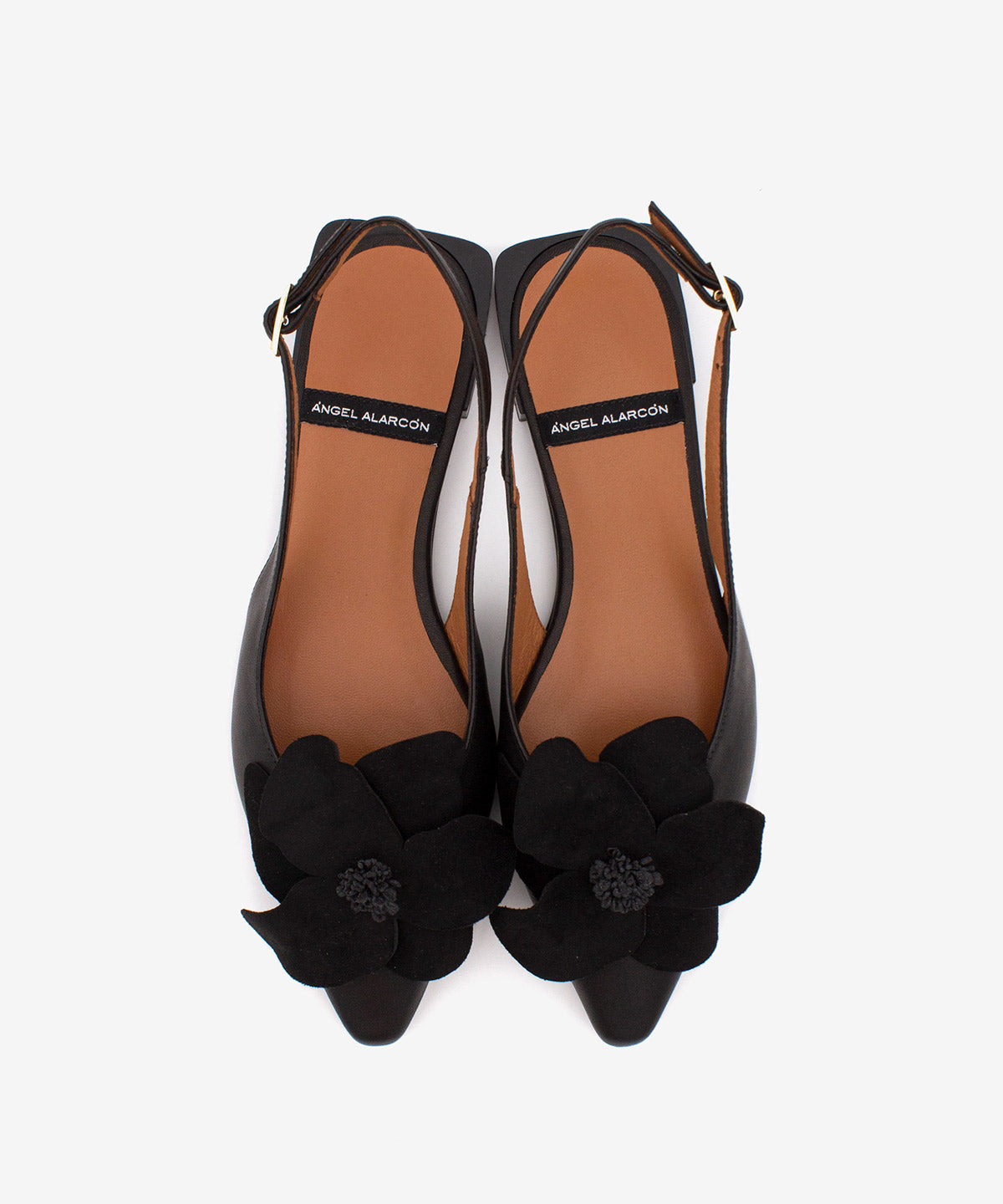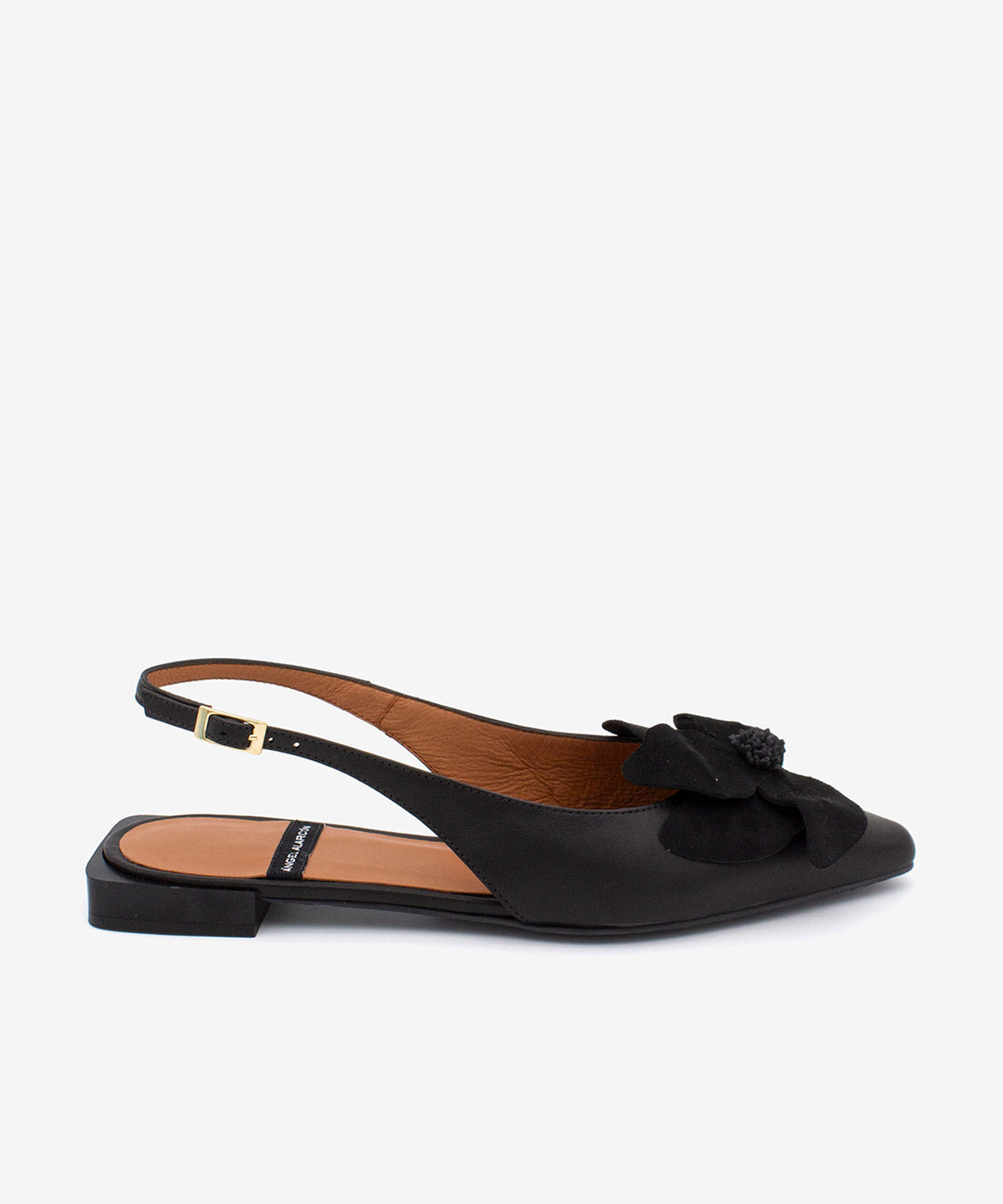 Fiora est une ballerine slingback légère et féminine, avec un bout pointu, un talon plat large de 1,5 cm et un ornement floral qui apporte une touche délicate et spéciale. Conçue pour un usage quotidien, elle est parfaite pour compléter des looks confortables avec une note élégante.